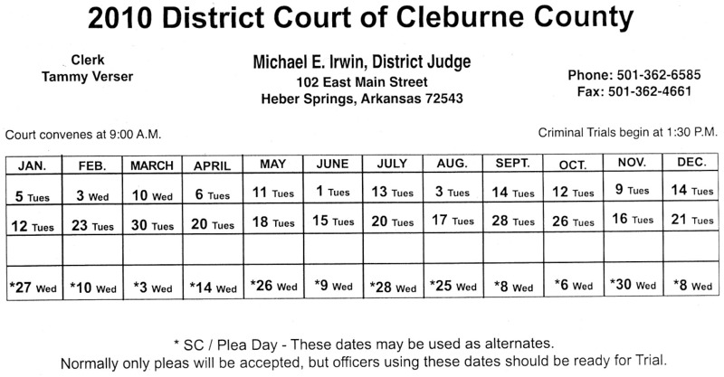 District Clerk Tammy Verser 102 East Main Street Heber Springs, AR 72543 Telephone: 501-362-6585 Facsimile: 501-362-4661 |