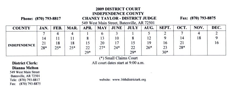 District Clerk Dianna Melton 368 East Main Street Batesville, AR 72501 Telephone: 870-793-8817 |